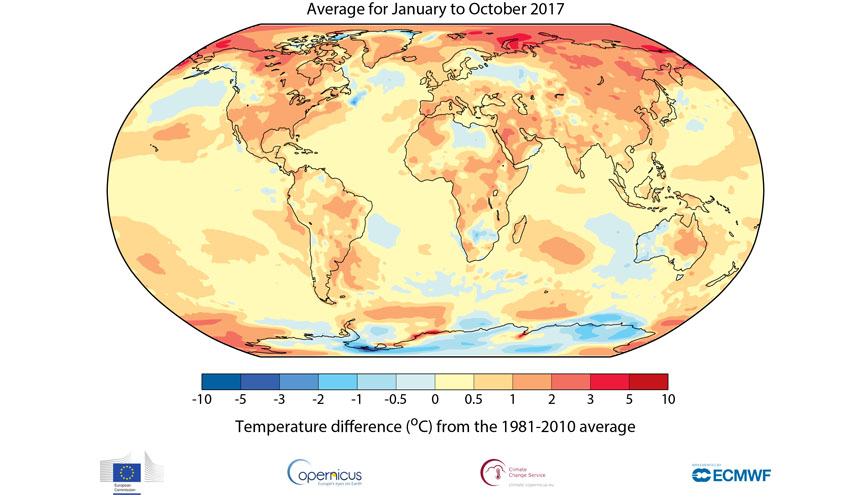 El 2017 estará entre los tres años más cálidos registrados según a Organización Meteorológica Mundial